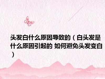 目前大家应该是对白头发是什么原因引起的 如何避免头发变白比较感兴趣的,所以今天小编CC就来为大家整理了一些关于白头发是什么原因引起的 如何避免头发变白方面的相关知识来分享给大家,希望大家会喜欢哦。