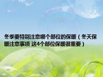 目前大家应该是对冬天保暖注意事项 这4个部位保暖很重要比较感兴趣的,所以今天小编CC就来为大家整理了一些关于冬天保暖注意事项 这4个部位保暖很重要方面的相关知识来分享给大家,希望大家会喜欢哦。