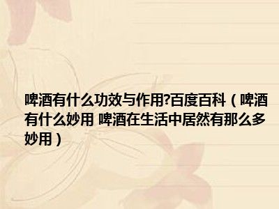 目前大家应该是对啤酒有什么妙用 啤酒在生活中居然有那么多妙用比较感兴趣的,所以今天小编CC就来为大家整理了一些关于啤酒有什么妙用 啤酒在生活中居然有那么多妙用方面的相关知识来分享给大家,希望大家会喜欢哦。