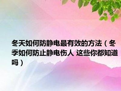目前大家应该是对冬季如何防止静电伤人 这些你都知道吗比较感兴趣的,所以今天小编CC就来为大家整理了一些关于冬季如何防止静电伤人 这些你都知道吗方面的相关知识来分享给大家,希望大家会喜欢哦。