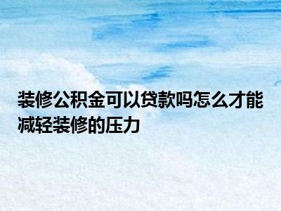 导读 目前大家应该是对装修能用公积金贷款吗如何才能减轻装修压力比较感兴趣的,所以今天好房网小编CC就来为大家整理了一些关于装修能用