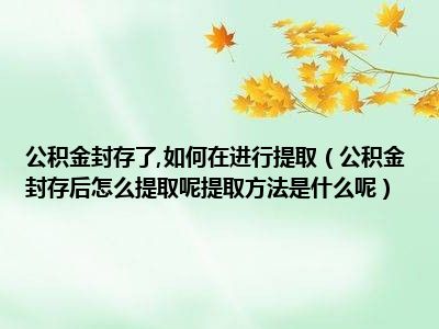 导读 目前大家应该是对公积金封存后怎么提取呢提取方法是什么呢比较感兴趣的,所以今天好房网小编CC就来为大家整理了一些关于公积金封存后怎么提