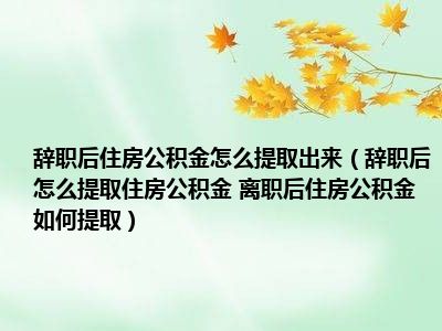 辞职后住房公积金怎么提取出来(辞职后怎么提取住房公积金 离职后住房公积金如何提取)