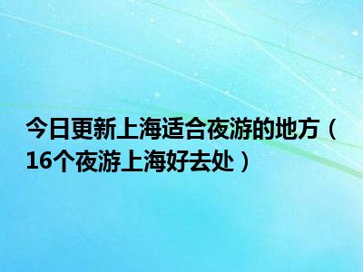 目前上述的内容应该能够为大家解答出大家对于上海适合夜游的地方(16个夜游上海好去处)的疑惑了,所以如果大家还想要了解更多的知识内容,也可以关注本站其他文章进行了解哦。