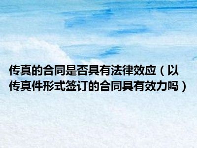 目前大家应该是对以传真件形式签订的合同具有效力吗比较感兴趣的,所以今天CC就来为大家整理了一些关于以传真件形式签订的合同具有效力吗方面的相关知识来分享给大家,希望大家会喜欢哦。