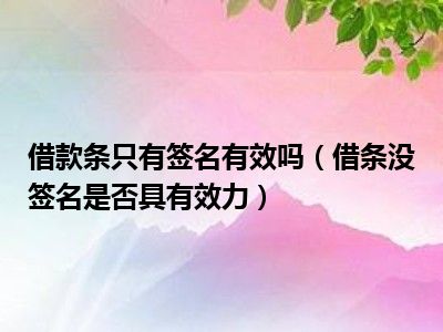目前大家应该是对借条没签名是否具有效力比较感兴趣的,所以今天CC就来为大家整理了一些关于借条没签名是否具有效力方面的相关知识来分享给大家,希望大家会喜欢哦。
