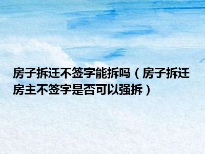目前大家应该是对房子拆迁房主不签字是否可以强拆比较感兴趣的,所以今天CC就来为大家整理了一些关于房子拆迁房主不签字是否可以强拆方面的相关知识来分享给大家,希望大家会喜欢哦。
