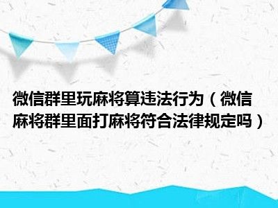 目前大家应该是对微信麻将群里面打麻将符合法律规定吗比较感兴趣的,所以今天CC就来为大家整理了一些关于微信麻将群里面打麻将符合法律规定吗方面的相关知识来分享给大家,希望大家会喜欢哦。