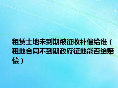 目前大家应该是对租地合同不到期政府征地能否给赔偿比较感兴趣的,所以今天CC就来为大家整理了一些关于租地合同不到期政府征地能否给赔偿方面的相关知识来分享给大家,希望大家会喜欢哦。