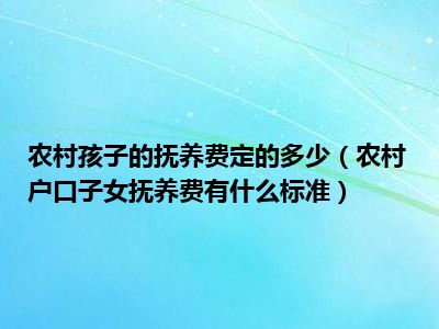 目前大家应该是对农村户口子女抚养费有什么标准比较感兴趣的,所以今天CC就来为大家整理了一些关于农村户口子女抚养费有什么标准方面的相关知识来分享给大家,希望大家会喜欢哦。