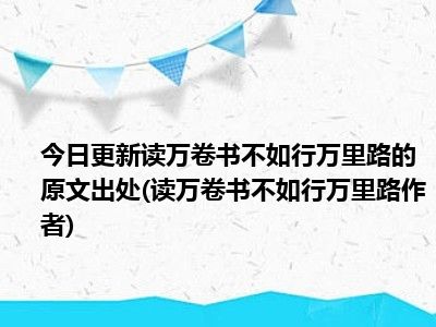 目前上述的内容应该能够为大家解答出大家对于读万卷书不如行万里路的原文出处(读万卷书不如行万里路作者)的疑惑了,所以如果大家还想要了解更多的知识内容,也可以关注本站其他文章进行了解哦。
