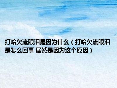 目前大家应该是对打哈欠流眼泪是怎么回事 居然是因为这个原因比较感兴趣的,所以今天小编CC就来为大家整理了一些关于打哈欠流眼泪是怎么回事 居然是因为这个原因方面的相关知识来分享给大家,希望大家会喜欢哦。