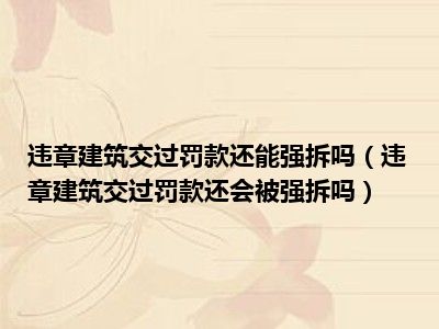 目前大家应该是对违章建筑交过罚款还会被强拆吗比较感兴趣的,所以今天CC就来为大家整理了一些关于违章建筑交过罚款还会被强拆吗方面的相关知识来分享给大家,希望大家会喜欢哦。