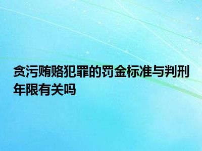 贪污受贿罪罚金标准与判多少年有联系。对贪污罪、受贿罪判处三年以下有期徒刑或者拘役的,应当并处十万元以上五十万元以下的罚金;判处三年以上十年以下有期徒刑的,应当并处二十万元以上犯罪数额二倍以下的罚金或者没收财产;判处十年以上有期徒刑或者无期徒刑的,应当并处五十万元以上犯罪数额二倍以下的罚金或者没收财产。