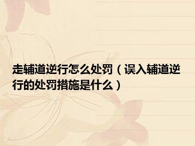 误入辅道逆行的处罚措施为,记3分,处二十元以上二百元以下罚款。 根据《道路交通安全违法行为记分分值》规定,驾驶机动车不按规定超车、让行的,或者逆向行驶的,扣三分。