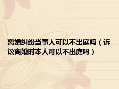目前大家应该是对诉讼离婚时本人可以不出庭吗比较感兴趣的,所以今天CC就来为大家整理了一些关于诉讼离婚时本人可以不出庭吗方面的相关知识来分享给大家,希望大家会喜欢哦。