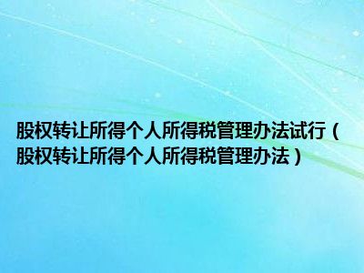 导读相信目前很多小伙伴对于股权转让所得个人所得税管理办法都比较感兴趣,那么小搜今天在网上也是收集了一些与股权转让所得个人所得税管理办法...