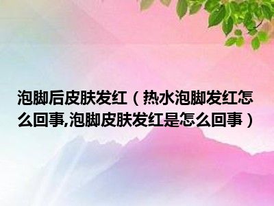 导读目前大家应该是对热水泡脚发红怎么回事,泡脚皮肤发红是怎么回事比较感兴趣的,所以今天小编CC就来为大家整理了一些关于热水泡脚发红怎么回...