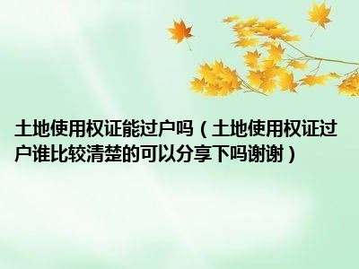 导读 目前大家应该是对土地使用权证过户谁比较清楚的,可以分享下吗,谢谢!比较感兴趣的,所以今天好房网小编CC就来为大家整理了一些关于土地使