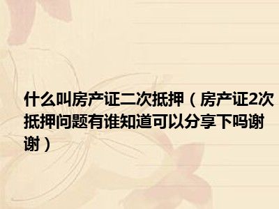 导读 目前大家应该是对房产证2次抵押问题有谁知道,可以分享下吗,谢谢!比较感兴趣的,所以今天好房网小编CC就来为大家整理了一些关于房产证2次