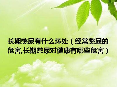 目前大家应该是对经常憋尿的危害,长期憋尿对健康有哪些危害比较感兴趣的,所以今天小编CC就来为大家整理了一些关于经常憋尿的危害,长期憋尿对健康有哪些危害方面的相关知识来分享给大家,希望大家会喜欢哦。