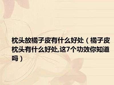 导读目前大家应该是对橘子皮枕头有什么好处,这7个功效你知道吗比较感兴趣的,所以今天小编CC就来为大家整理了一些关于橘子皮枕头有什么好处,这7...