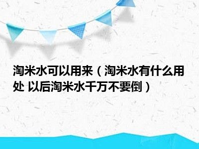 导读 目前大家应该是对淘米水有什么用处 以后淘米水千万不要倒比较感兴趣的,所以今天小编CC就来为大家整理了一些关于淘米水有什么用处 以后淘...