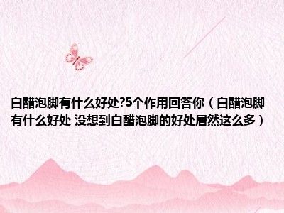 目前大家应该是对白醋泡脚有什么好处 没想到白醋泡脚的好处居然这么多比较感兴趣的,所以今天小编CC就来为大家整理了一些关于白醋泡脚有什么好处 没想到白醋泡脚的好处居然这么多方面的相关知识来分享给大家,希望大家会喜欢哦。