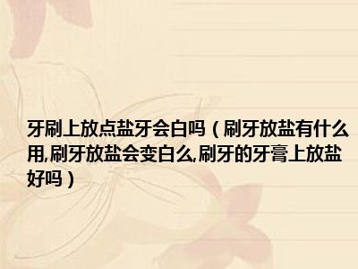 目前大家应该是对刷牙放盐有什么用,刷牙放盐会变白么,刷牙的牙膏上放盐好吗比较感兴趣的,所以今天小编CC就来为大家整理了一些关于刷牙放盐有什么用,刷牙放盐会变白么,刷牙的牙膏上放盐好吗方面的相关知识来分享给大家,希望大家会喜欢哦。