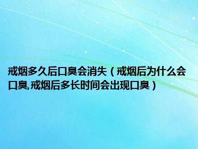 目前大家应该是对戒烟后为什么会口臭,戒烟后多长时间会出现口臭比较感兴趣的,所以今天小编CC就来为大家整理了一些关于戒烟后为什么会口臭,戒烟后多长时间会出现口臭方面的相关知识来分享给大家,希望大家会喜欢哦。