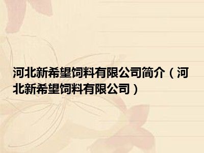 1、河北新希望饲料有限公司,是由四川新希望农业股份有限公司(股票代码000876)控股,在河北辛集市新建的一家中外合资企业。