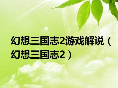 导读相信目前很多小伙伴对于幻想三国志2都比较感兴趣,那么小搜今天在网上也是收集了一些与幻想三国志2相关的信息来分享给大家,希望能够帮助到...