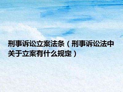 刑事诉讼法中关于立案的规定:公安机关或者人民检察院发现犯罪事实或者犯罪嫌疑人,应当按照管辖范围,立案侦查。人民法院、人民检察院或者公安机关对于报案,应当按照管辖范围,迅速进行审查,认为有犯罪事实需要追究刑事责任的时候,应当立案;认为没有犯罪事实,或者犯罪事实显著轻微,不需要追究刑事责任的时候,不予立案,并且要将不立案的原因通知控告人。