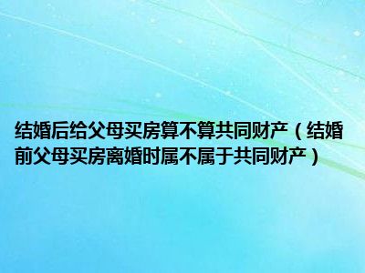 目前大家应该是对结婚前父母买房,离婚时属不属于共同财产比较感兴趣的,所以今天CC就来为大家整理了一些关于结婚前父母买房,离婚时属不属于共同财产方面的相关知识来分享给大家,希望大家会喜欢哦。