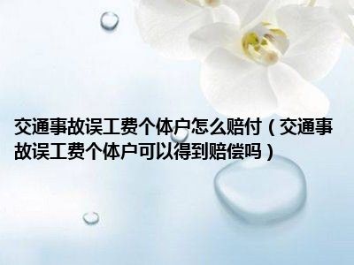 如果是个体户因为交通事故遭受误工也是可以得到赔偿的。受害人是个体工商户的,其误工费的计算标准,可以参照受害人一定期限内的平均收入酌定。受害人有固定收入的,误工费按照实际减少的收入计算。受害人无固定收入的,按照其最近三年的平均收入计算;受害人不能举证证明其最近三年的平均收入状况的,可以参照受诉法院所在地相同或者相近行业上一年度职工的平均工资计算。