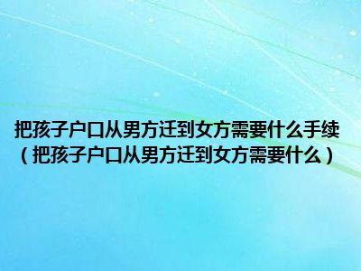 目前大家应该是对把孩子户口从男方迁到女方需要什么比较感兴趣的,所以今天CC就来为大家整理了一些关于把孩子户口从男方迁到女方需要什么方面的相关知识来分享给大家,希望大家会喜欢哦。