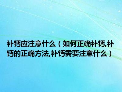目前大家应该是对如何正确补钙,补钙的正确方法,补钙需要注意什么比较感兴趣的,所以今天小编CC就来为大家整理了一些关于如何正确补钙,补钙的正确方法,补钙需要注意什么方面的相关知识来分享给大家,希望大家会喜欢哦。