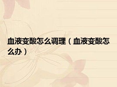 目前大家应该是对血液变酸怎么办比较感兴趣的,所以今天小编CC就来为大家整理了一些关于血液变酸怎么办方面的相关知识来分享给大家,希望大家会喜欢哦。