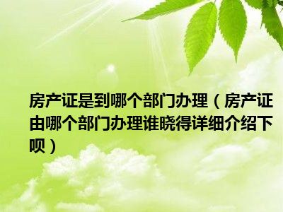 导读 目前大家应该是对房产证由哪个部门办理谁晓得详细介绍下呗比较感兴趣的,所以今天好房网小编CC就来为大家整理了一些关于房产证由哪个部门办