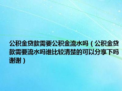 导读 目前大家应该是对公积金贷款需要流水吗谁比较清楚的,可以分享下吗,谢谢!比较感兴趣的,所以今天好房网小编CC就来为大家整理了一些关于公