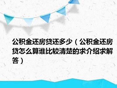 导读 目前大家应该是对公积金还房贷怎么算谁比较清楚的,求介绍!求解答!比较感兴趣的,所以今天好房网小编CC就来为大家整理了一些关于公积金还