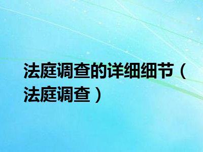 导读相信目前很多小伙伴对于法庭调查都比较感兴趣,那么小搜今天在网上也是收集了一些与法庭调查相关的信息来分享给大家,希望能够帮助到大家哦...