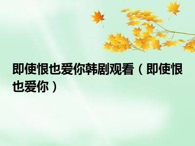 导读相信目前很多小伙伴对于即使恨也爱你都比较感兴趣,那么小搜今天在网上也是收集了一些与即使恨也爱你相关的信息来分享给大家,希望能够帮助...