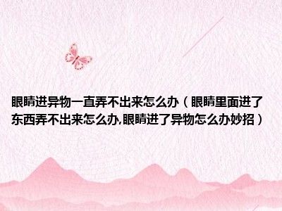 目前大家应该是对眼睛里面进了东西弄不出来怎么办,眼睛进了异物怎么办妙招比较感兴趣的,所以今天小编CC就来为大家整理了一些关于眼睛里面进了东西弄不出来怎么办,眼睛进了异物怎么办妙招方面的相关知识来分享给大家,希望大家会喜欢哦。
