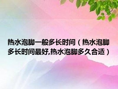 目前大家应该是对热水泡脚多长时间最好,热水泡脚多久合适比较感兴趣的,所以今天小编CC就来为大家整理了一些关于热水泡脚多长时间最好,热水泡脚多久合适方面的相关知识来分享给大家,希望大家会喜欢哦。