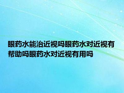 目前大家应该是对眼药水能治近视吗,眼药水对近视眼有没有帮助,眼药水对近视有用吗比较感兴趣的,所以今天小编CC就来为大家整理了一些关于眼药水能治近视吗,眼药水对近视眼有没有帮助,眼药水对近视有用吗方面的相关知识来分享给大家,希望大家会喜欢哦。