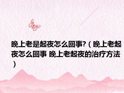 目前大家应该是对晚上老起夜怎么回事 晚上老起夜的治疗方法比较感兴趣的,所以今天小编CC就来为大家整理了一些关于晚上老起夜怎么回事 晚上老起夜的治疗方法方面的相关知识来分享给大家,希望大家会喜欢哦。