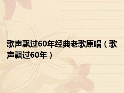 导读 相信目前很多小伙伴对于歌声飘过60年都比较感兴趣,那么小搜今天在网上也是收集了一些与歌声飘过60年相关的信息来分享给大家,希望能够帮助