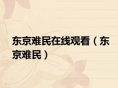 导读 相信目前很多小伙伴对于东京难民都比较感兴趣,那么小搜今天在网上也是收集了一些与东京难民相关的信息来分享给大家,希望能够帮助到大家哦