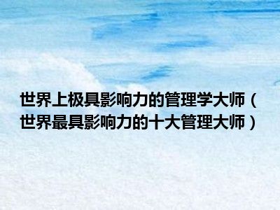 导读 相信目前很多小伙伴对于世界最具影响力的十大管理大师都比较感兴趣,那么小搜今天在网上也是收集了一些与世界最具影响力的十大管理大师相关